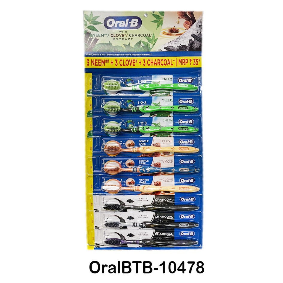 9ct. Oral B ToothBrush Mixed – Cavity Defense Charcoal, Gentle Care & 123 Neem 20/cs